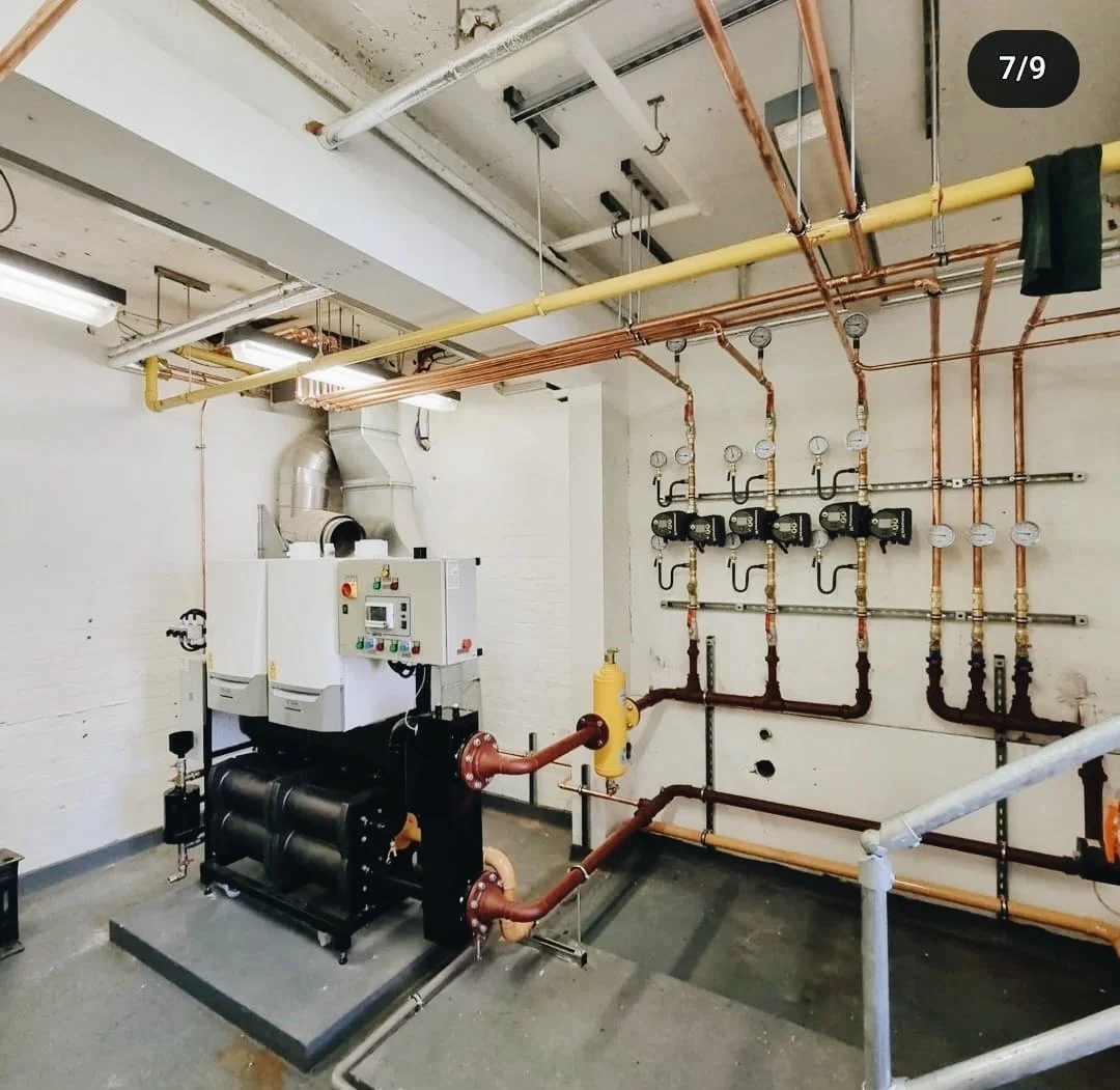 The team began by stripping out the original, rotten iron pipework and cast iron radiators, boilers and gas pipework. Next, the team looked to renew the 180kw boilers on rig with plate heat exchanger. Lastly, installing the in-house welded and screwed iron header. It was then on to distributing pipework, with copper heating services, and installation of 60 radiators.