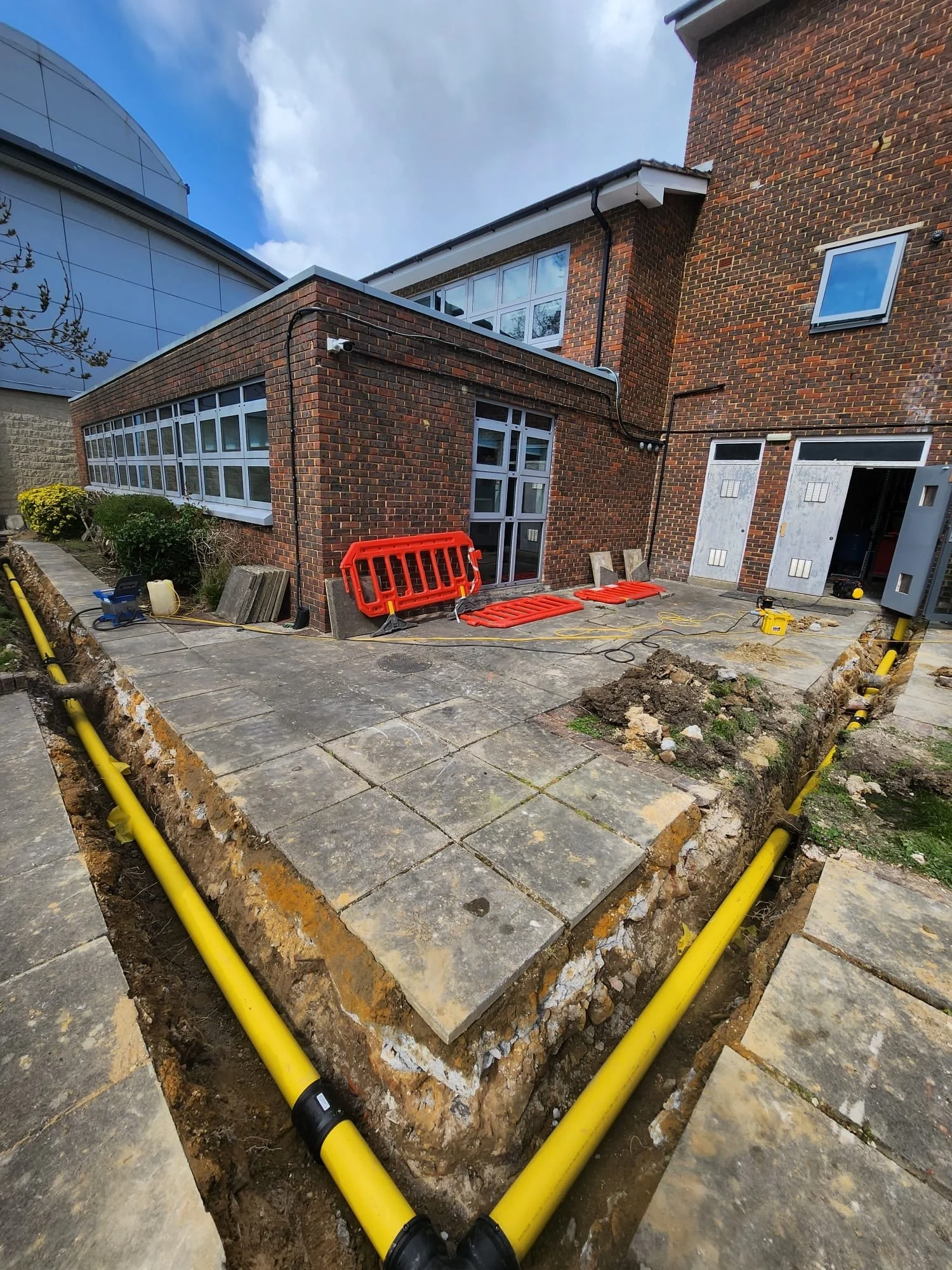 We planned a new route for a larger gas supply from the meter to the building. This meant using groundworks teams to dig and create a trench for the correct depth allowing for gas pipe to travel. This underground gas supply was electrofusion welded. We then took the pipe from ground to high level, arc welding all the new steel pipework to keep within regulations.